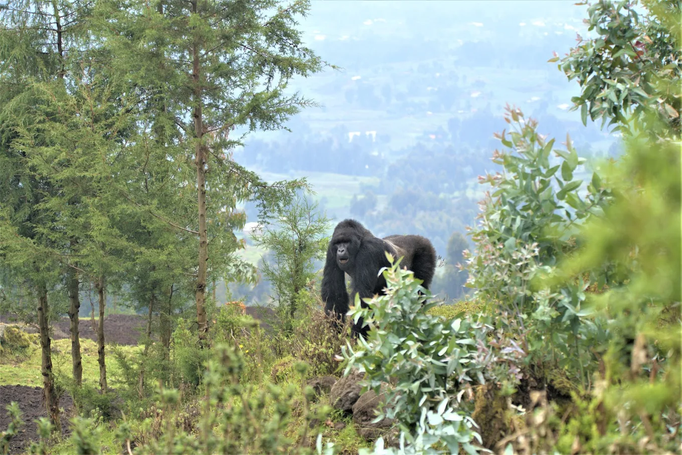 Mountain gorillas visited by trekkers are habituated and closely monitored. Aggressive behavior toward humans is extremely rare. Guides and rangers are trained to read gorilla behavior and manage positioning to prevent stress or confrontation.