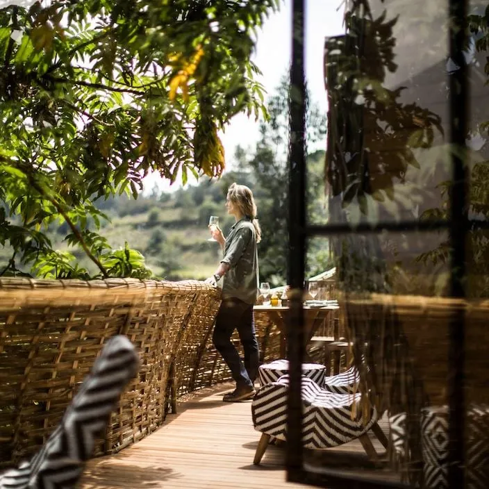 The main lodge building at Mahogany Springs is perched on a hillside, offering spectacular views of Bwindi from its panoramic terrace. Take a seat on the terrace or in our spacious restaurant and enjoy a variety of internationally inspired food and drinks. Private dining is also available by the river or on your own balcony.