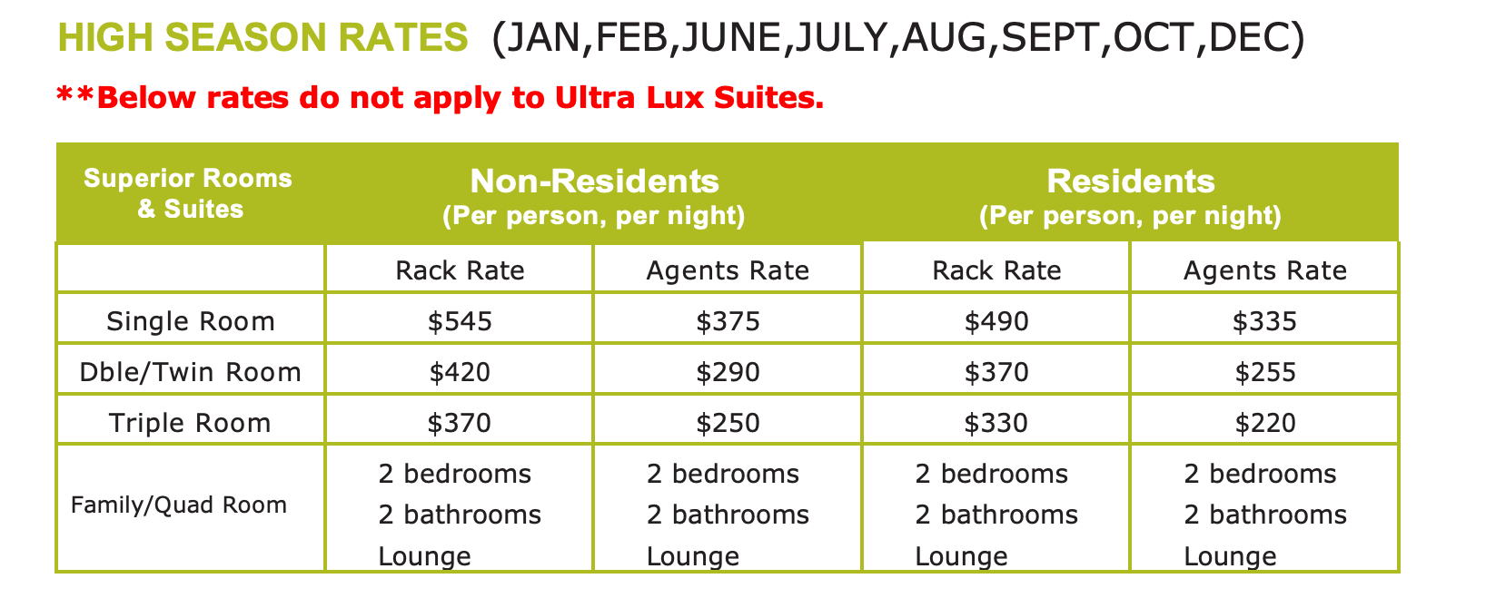 All of our rooms are suites with terraces and ensuite bathrooms. They have Superior Deluxe Suites and then Premium Deluxe Suites.
